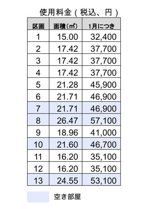入居情報(区画空き情報)